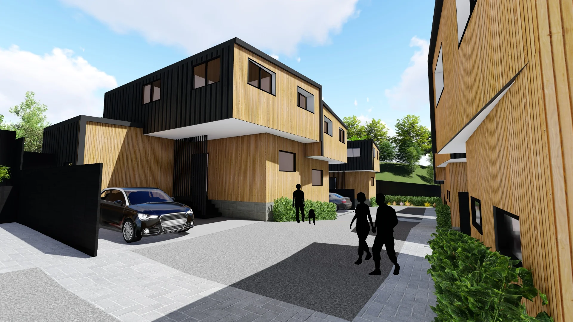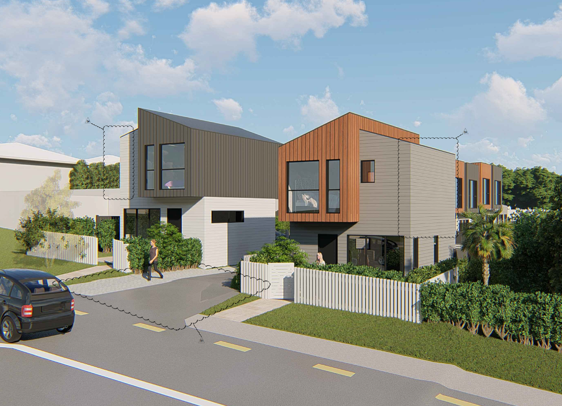 5 lot terrace scheme prepared by Brave Architects. The first redevelopment project for this area of Mangere and will be the catalyst for urban change in this local area.